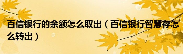 大家好,小育来为大家讲解下。百信银行的余额怎么取出,百信银行智慧存怎么转出很多人还不知道,现在让我们一起来看看吧!