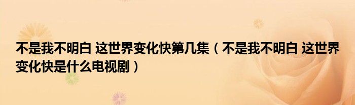 大家好,小育来为大家讲解下。不是我不明白 这世界变化快第几集,不是我不明白 这世界变化快是什么电视剧很多人还不知道,现在让我们一起来看看吧!