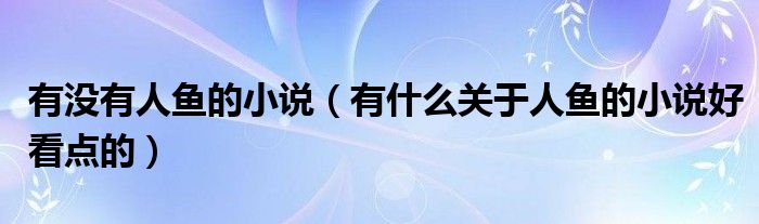 大家好,小育来为大家讲解下。有没有人鱼的小说,有什么关于人鱼的小说好看点的很多人还不知道,现在让我们一起来看看吧!