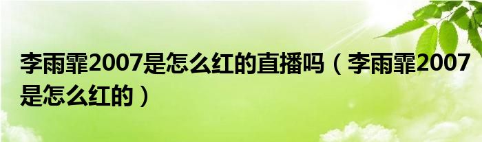 大家好,小育来为大家讲解下。李雨霏2007是怎么红的直播吗,李雨霏2007是怎么红的很多人还不知道,现在让我们一起来看看吧!