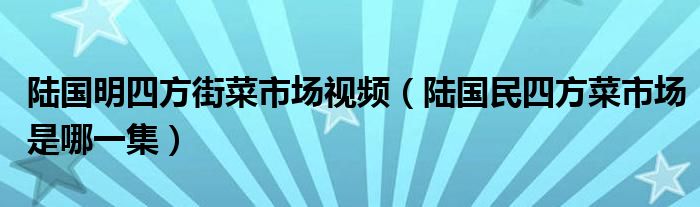 大家好,小育来为大家讲解下。陆国明四方街菜市场视频,陆国民四方菜市场是哪一集很多人还不知道,现在让我们一起来看看吧!
