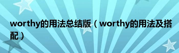 大家好,小育来为大家讲解下。worthy的用法总结版,worthy的用法及搭配很多人还不知道,现在让我们一起来看看吧!