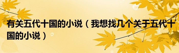 大家好,小育来为大家讲解下。有关五代十国的小说,我想找几个关于五代十国的小说很多人还不知道,现在让我们一起来看看吧!