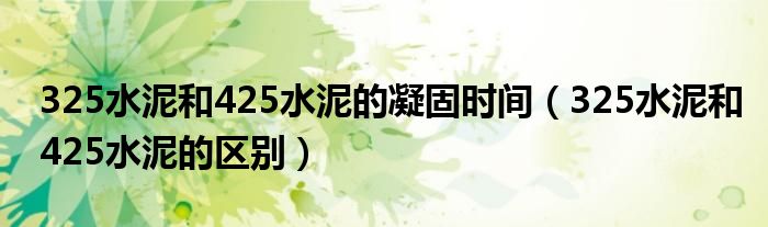 大家好,小育来为大家讲解下。325水泥和425水泥的凝固时间,325水泥和425水泥的区别很多人还不知道,现在让我们一起来看看吧!