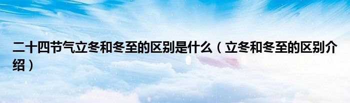 大家好,伊人来为大家解答以上问题。二十四节气立冬和冬至的区别是什么,立冬和冬至的区别介绍很多人还不知道,现在让我们一起来看看吧!