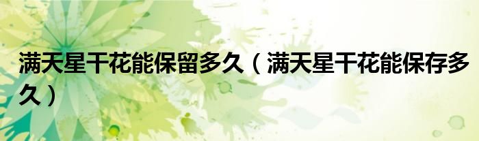 大家好,小育来为大家讲解下。满天星干花能保留多久,满天星干花能保存多久很多人还不知道,现在让我们一起来看看吧!