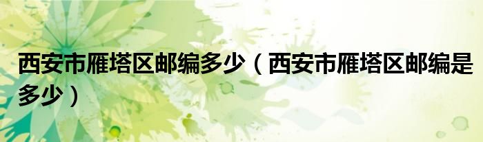 大家好,小育来为大家讲解下。西安市雁塔区邮编多少,西安市雁塔区邮编是多少很多人还不知道,现在让我们一起来看看吧!