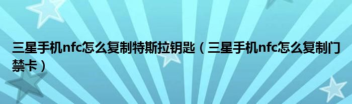 大家好,小育来为大家讲解下。三星手机nfc怎么复制特斯拉钥匙,三星手机nfc怎么复制门禁卡很多人还不知道,现在让我们一起来看看吧!
