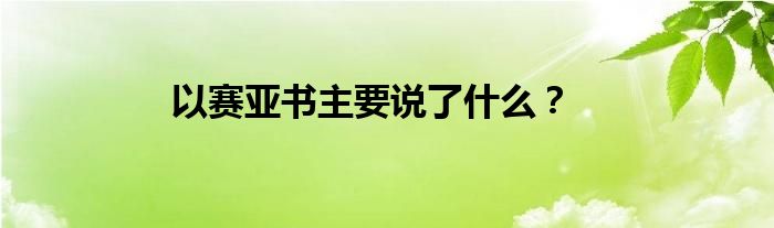 大家好,小育来为大家讲解下。以赛亚书主要说了什么?很多人还不知道,现在让我们一起来看看吧!