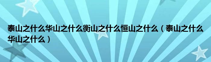 大家好,小育来为大家讲解下。泰山之什么华山之什么衡山之什么恒山之什么,泰山之什么华山之什么很多人还不知道,现在让我们一起来看看吧!