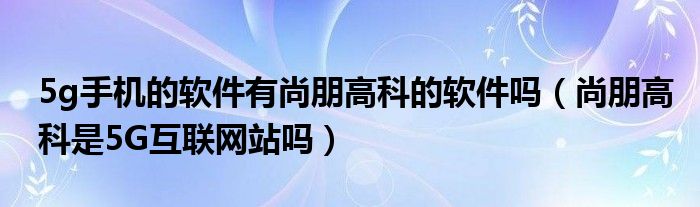 大家好,小育来为大家讲解下。5g手机的软件有尚朋高科的软件吗,尚朋高科是5G互联网站吗很多人还不知道,现在让我们一起来看看吧!