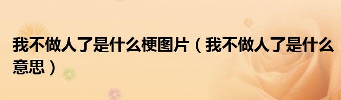 大家好,小育来为大家讲解下。我不做人了是什么梗图片,我不做人了是什么意思很多人还不知道,现在让我们一起来看看吧!