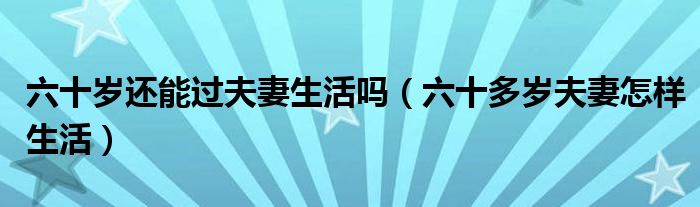 大家好,小育来为大家讲解下。六十岁还能过夫妻生活吗,六十多岁夫妻怎样生活很多人还不知道,现在让我们一起来看看吧!