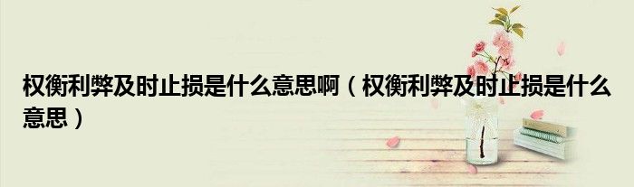 大家好,小育来为大家讲解下。权衡利弊及时止损是什么意思啊,权衡利弊及时止损是什么意思很多人还不知道,现在让我们一起来看看吧!