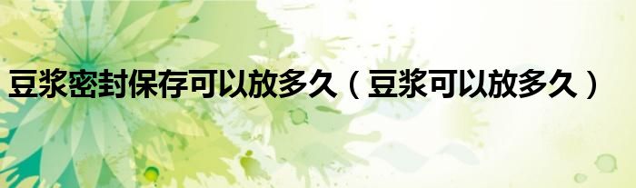 大家好,小育来为大家讲解下。豆浆密封保存可以放多久,豆浆可以放多久很多人还不知道,现在让我们一起来看看吧!