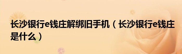 大家好,小育来为大家讲解下。长沙银行e钱庄解绑旧手机,长沙银行e钱庄是什么很多人还不知道,现在让我们一起来看看吧!
