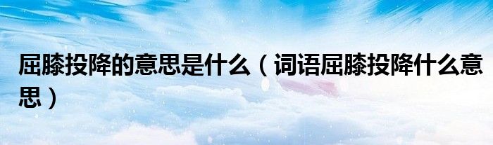 大家好,伊人来为大家解答以上问题。屈膝投降的意思是什么,词语屈膝投降什么意思很多人还不知道,现在让我们一起来看看吧!