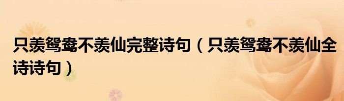 大家好,小育来为大家讲解下。只羡鸳鸯不羡仙完整诗句,只羡鸳鸯不羡仙全诗诗句很多人还不知道,现在让我们一起来看看吧!
