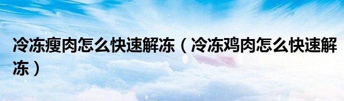 大家好,小育来为大家讲解下。冷冻瘦肉怎么快速解冻,冷冻鸡肉怎么快速解冻很多人还不知道,现在让我们一起来看看吧!