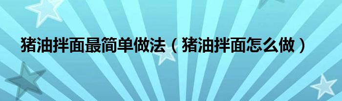 大家好,小育来为大家讲解下。猪油拌面最简单做法,猪油拌面怎么做很多人还不知道,现在让我们一起来看看吧!