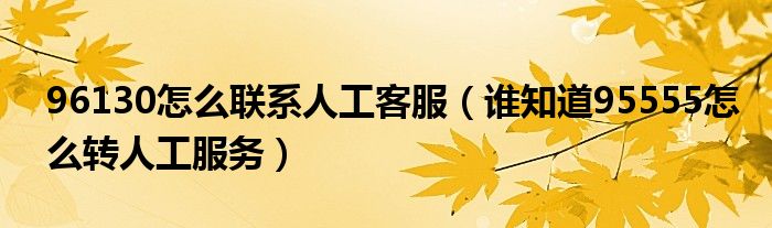 大家好,小育来为大家讲解下。96130怎么联系人工客服,谁知道95555怎么转人工服务很多人还不知道,现在让我们一起来看看吧!