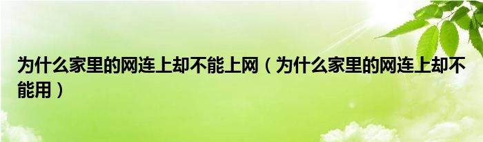 大家好,小育来为大家讲解下。为什么家里的网连上却不能上网,为什么家里的网连上却不能用很多人还不知道,现在让我们一起来看看吧!