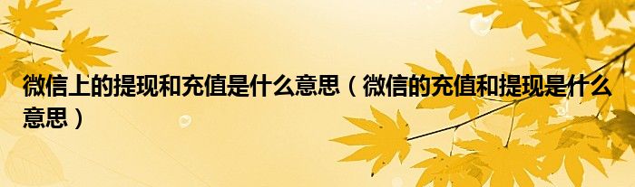 大家好,小育来为大家讲解下。微信上的提现和充值是什么意思,微信的充值和提现是什么意思很多人还不知道,现在让我们一起来看看吧!