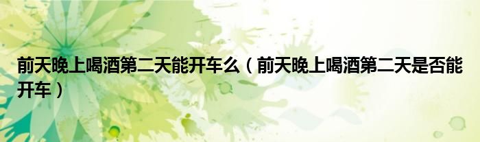 大家好,小育来为大家讲解下。前天晚上喝酒第二天能开车么,前天晚上喝酒第二天是否能开车很多人还不知道,现在让我们一起来看看吧!