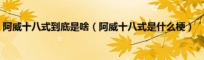 大家好,小育来为大家讲解下。阿威十八式到底是啥,阿威十八式是什么梗很多人还不知道,现在让我们一起来看看吧!