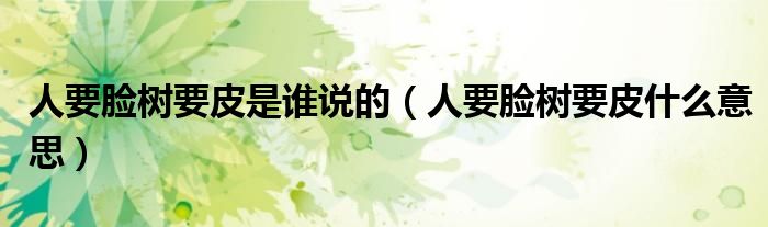 大家好,小育来为大家讲解下。人要脸树要皮是谁说的,人要脸树要皮什么意思很多人还不知道,现在让我们一起来看看吧!