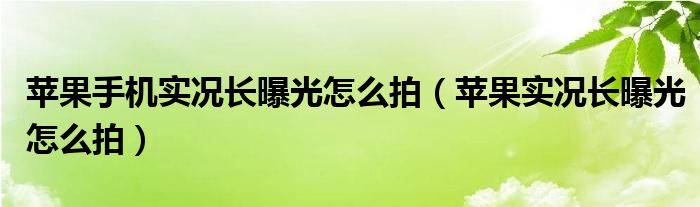 大家好,小育来为大家讲解下。苹果手机实况长曝光怎么拍,苹果实况长曝光怎么拍很多人还不知道,现在让我们一起来看看吧!
