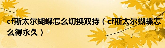 大家好,小育来为大家讲解下。cf斯太尔蝴蝶怎么切换双持,cf斯太尔蝴蝶怎么得永久很多人还不知道,现在让我们一起来看看吧!