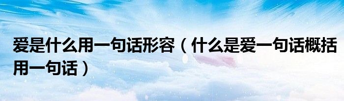 大家好,小育来为大家讲解下。爱是什么用一句话形容,什么是爱一句话概括用一句话很多人还不知道,现在让我们一起来看看吧!