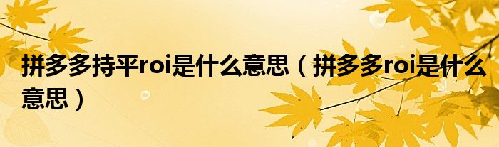大家好,小育来为大家讲解下。拼多多持平roi是什么意思,拼多多roi是什么意思很多人还不知道,现在让我们一起来看看吧!