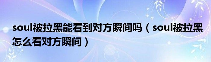 大家好,小育来为大家讲解下。soul被拉黑能看到对方瞬间吗,soul被拉黑怎么看对方瞬间很多人还不知道,现在让我们一起来看看吧!