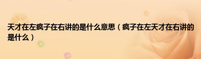 大家好,小育来为大家讲解下。天才在左疯子在右讲的是什么意思,疯子在左天才在右讲的是什么很多人还不知道,现在让我们一起来看看吧!