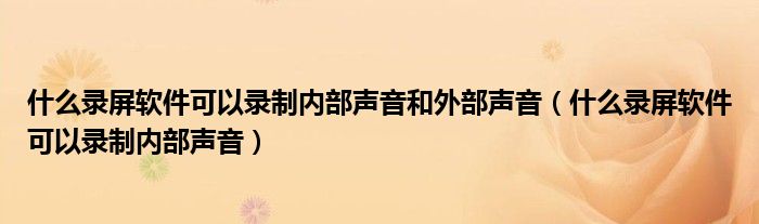 大家好,小育来为大家讲解下。什么录屏软件可以录制内部声音和外部声音,什么录屏软件可以录制内部声音很多人还不知道,现在让我们一起来看看吧!