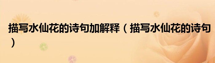 大家好,小育来为大家讲解下。描写水仙花的诗句加解释,描写水仙花的诗句很多人还不知道,现在让我们一起来看看吧!