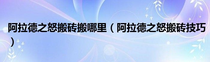 1、阿拉德之怒搬砖技巧?对阿拉德之怒搬砖技巧的介绍是什么