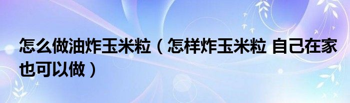 大家好,小育来为大家讲解下。怎么做油炸玉米粒,怎样炸玉米粒 自己在家也可以做很多人还不知道,现在让我们一起来看看吧!