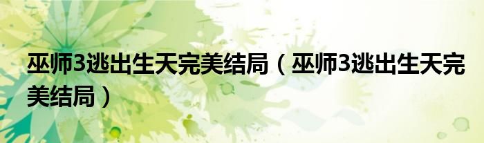 大家好,小育来为大家讲解下。巫师3逃出生天完美结局,巫师3逃出生天完美结局很多人还不知道,现在让我们一起来看看吧!