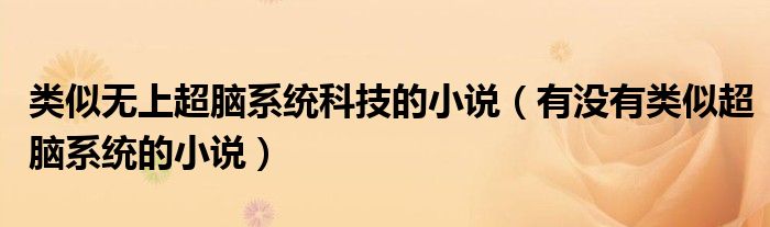 大家好,小育来为大家讲解下。类似无上超脑系统科技的小说,有没有类似超脑系统的小说很多人还不知道,现在让我们一起来看看吧!
