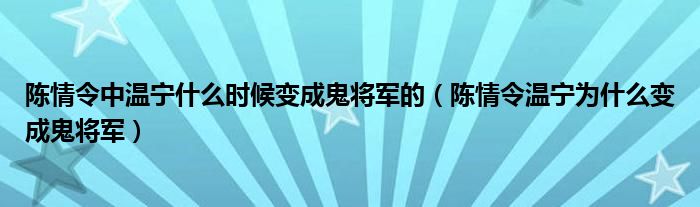 大家好,小育来为大家讲解下。陈情令中温宁什么时候变成鬼将军的,陈情令温宁为什么变成鬼将军很多人还不知道,现在让我们一起来看看吧!