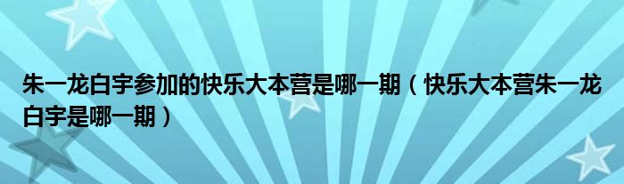 大家好,小育来为大家讲解下。朱一龙白宇参加的快乐大本营是哪一期,快乐大本营朱一龙白宇是哪一期很多人还不知道,现在让我们一起来看看吧!