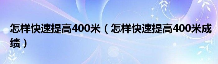 大家好,小育来为大家讲解下。怎样快速提高400米,怎样快速提高400米成绩很多人还不知道,现在让我们一起来看看吧!