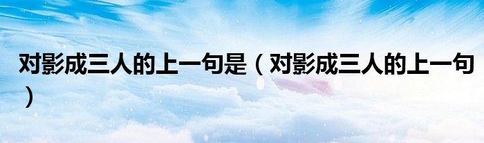 大家好,小育来为大家讲解下。对影成三人的上一句是,对影成三人的上一句很多人还不知道,现在让我们一起来看看吧!