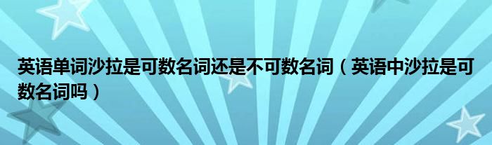大家好,小育来为大家讲解下。英语单词沙拉是可数名词还是不可数名词,英语中沙拉是可数名词吗很多人还不知道,现在让我们一起来看看吧!