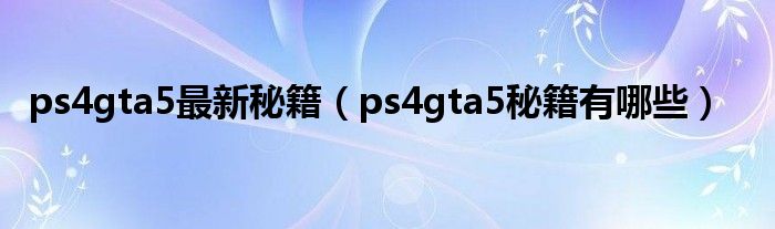 大家好,小育来为大家讲解下。ps4gta5最新秘籍,ps4gta5秘籍有哪些很多人还不知道,现在让我们一起来看看吧!