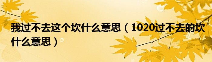 大家好,小育来为大家讲解下。我过不去这个坎什么意思,1020过不去的坎什么意思很多人还不知道,现在让我们一起来看看吧!