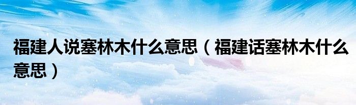 大家好,小育来为大家讲解下。福建人说塞林木什么意思,福建话塞林木什么意思很多人还不知道,现在让我们一起来看看吧!